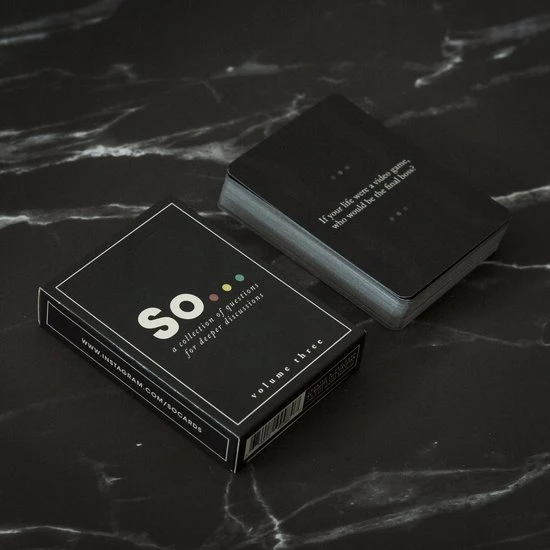 The right balance between thought-provoking and approachable. Inquisitive without being too invasive, this deck is ideal for dinners, parties, and friendly get-togethers. You can bring this to the office without worrying that it may cross certain borders. (If you do want to get extra vulnerable, we recommend the Unstuck Yourself deck.)
