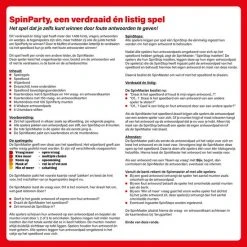 Spin Party: Het verdraaid leuk weet-spel voor de hele familie, met meer dan 1400 vragen. Je familie en vrienden kunnen misschien slim zijn, maar hebben ze ook de juiste tactiek om het spel te winnen? Door te bluffen en/of antwoorden letterlijk te verdraaien via het speelbord kan je met foute antwoorden en de goede tactiek het spel winnen.