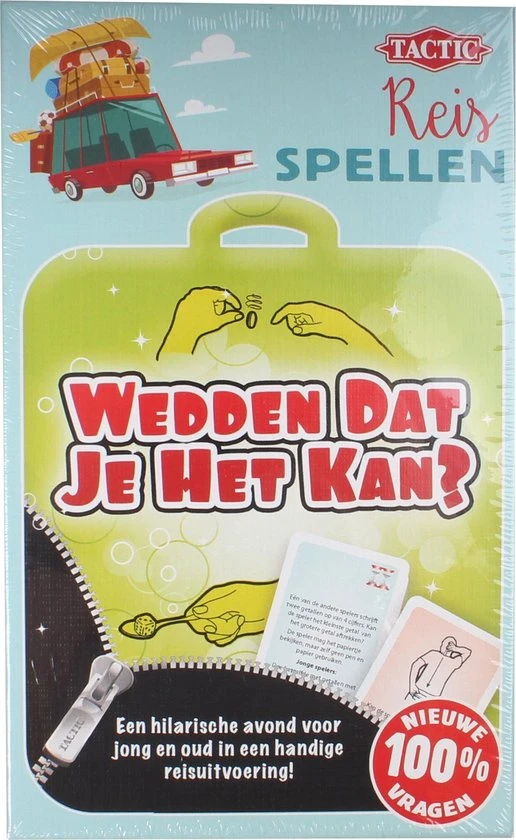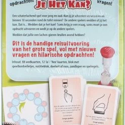 In dit hilarische nieuwe familiespel proberen alle spelers de meest bizarre en leuke opdrachten uit te voeren. Dit terwijl de andere spelers wedden of de speler dit succesvol kan uitvoeren of niet! Kun jij je schoenen wisselen en binnen tien seconden rond de tafel rennen? Het interactieve element en de hilarische opdrachten maken het een hit voor zowel volwassenen als kinderen! Wedden dat jullie een lachen-gieren-brullen-avond hebben?