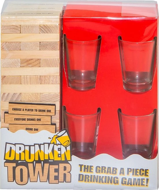 - 1x The drunken tower (variant op Jenga met opdrachten)