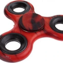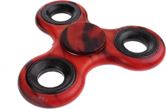 Mensen die zich slecht kunnen concentreren hebben er baat bij als ze ergens mee kunnen friemelen. Maar de meeste zenuwtikken, zoals klikken met jouw pen of trillen met jouw been, zijn erg vervelend voor jouw omgeving. De fidget spinner is hiervoor het ideale gadget. Dit is een klein apparaatje wat je kunt laten draaien in jouw hand. Deze fidget spinner heeft drie poten en een vette rode print.