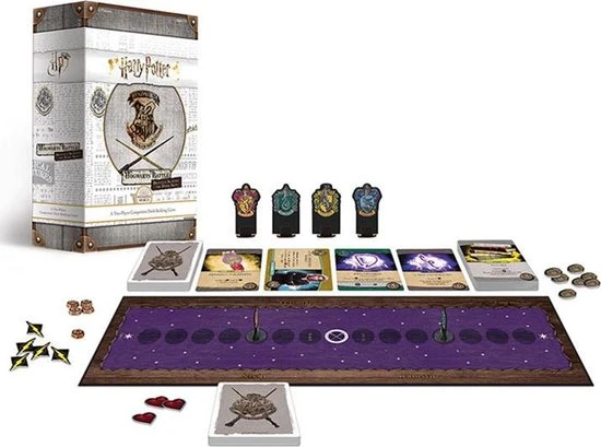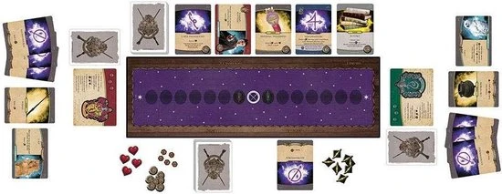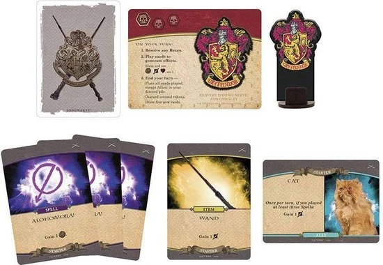 Harry Potter Hogwarts Battle Against the Dark Arts is een competitief platformspel voor twee spelers dat is ge?nspireerd op Harry Potter Hogwarts Battle. In dit snelle spel spelen spelers om de beurt kaarten, nemen ze acties en verwerven ze nieuwe kaarten om een krachtiger deck te bouwen naarmate hun verdedigingsvaardigheden verbeteren. Verdoof je tegenstander drie keer om te winnen! Inhoud: * 1 oefenmat * 4 extra grote kaarten * 8 verhuizers voor het huis * 2 bases * 24 startkaarten (14 spreuken, 4 items, 6 geallieerden) * 31 Hex kaarten * 129 Hogwarts-kaarten (72 spreuken, 35 items, 22 geallieerden) * 5 Stun tokens * 30 chipstukken (14 invloedstokens, 8 aanvalstokens, 8 gezondheidstokens) Officieel gelicentieerd kaartspel Spelers: 2 Aanbevolen leeftijd: vanaf 11 jaar Speeltijd: 45+ minuten