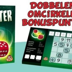 Een spannend spel… vanaf de eerste worp! Schrijf de getallen slim op je blad om combinaties te maken en scoor daarmee punten Iedereen speelt tegelijkertijd: iemand gooit de dobbelstenen, iedereen schrijft dat getal op zijn blok!