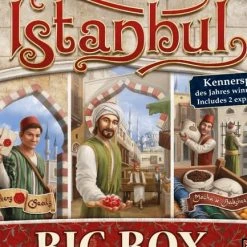 Beste handelaar, welkom op de Bazaar van Istanbul! Het is een drukte van belang op de bazaar. Handelaren en hun assistenten haasten zich door de nauwe steegjes en proberen hun concurrenten te slim af te zijn. De sleutel tot succes ligt in een goede organisatie: assistenten vullen de handkarren bij de diverse pakhuizen en brengen deze vervolgens met gezwinde spoed naar de juiste bestemming. Istanbul Big Box is inclusief het basisspel, de uitbreiding Mokka & Smeergeld en de uitbreiding Brieven & Zegels. Ga op de bazaar nieuwe uitdagingen aan met je handelaar en zijn assistenten en zoek hulp bij je kameraden. Ook kun je voor het juiste bedrag hulp vragen in het Gildehuis en in de Herberg. De speler die als eerste het juiste aantal robijnen in zijn bezit heeft wint het spel!