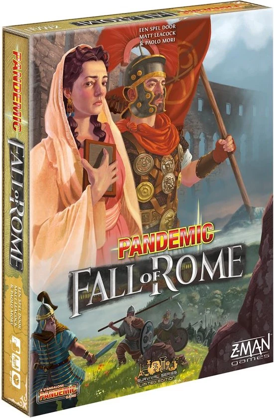 Burgers, soldaten en bondgenoten van Rome verenigen zich in Pandemic: Fall of Rome! In deze limited edition versie van het bordspel Pandemic uit de Survival Series stel jij legers samen, verdedig je steden tegen de binnenvallende hordes en sluit je bondgenootschappen om het Romeinse Rijk te redden! Kun jij weerstand bieden aan de binnenvallende hordes en zo de val van Rome voorkomen?