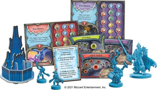 In dit epische avontuur uit het World of Warcraft-universum reizen spelers naar het bevroren continent Northrend om het op te nemen tegen de legers van de Lich King. Deze Pandemic System-game toont bekende mechanica en gameplay, nu aangepast om de setting van de Wrath of the Lich King te omarmen. Forten, tempels, slagvelden en meer bevolken het spelbord terwijl jij en je medehelden door het koude landschap reizen. Onderweg zet je forten op, voltooi je missies en vecht je met legioenen ondoden.