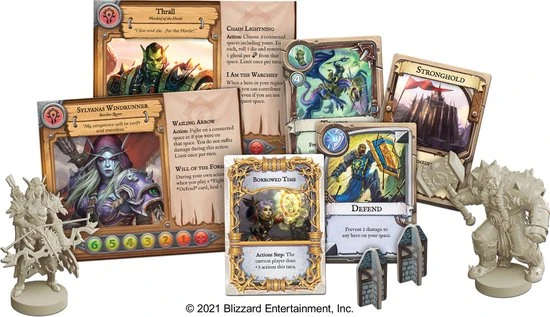 Jij en je vrienden zullen samenwerken als legendarische helden uit heel Azeroth, elk met hun eigen unieke vaardigheden om te helpen in en uit de strijd. Helden zoals Thrall, Warchief van de Horde; Varian Wrynn, koning van Stormwind; Sylvanas Windrunner, Banshee Koningin van de Forsaken; en nog veel meer binnen handbereik. Naarmate de Scourge groeit, zullen meer ondoden het bord bevolken. Gooi dobbelstenen terwijl je de strijd aangaat tegen de hordes geesten en woeste gruwelen, gebruik heldenkaarten om kracht aan je aanvallen toe te voegen, inkomende aanvallen te blokkeren, wonden te helen, rijdieren naar verre ruimten te nemen, en nog veel meer.
